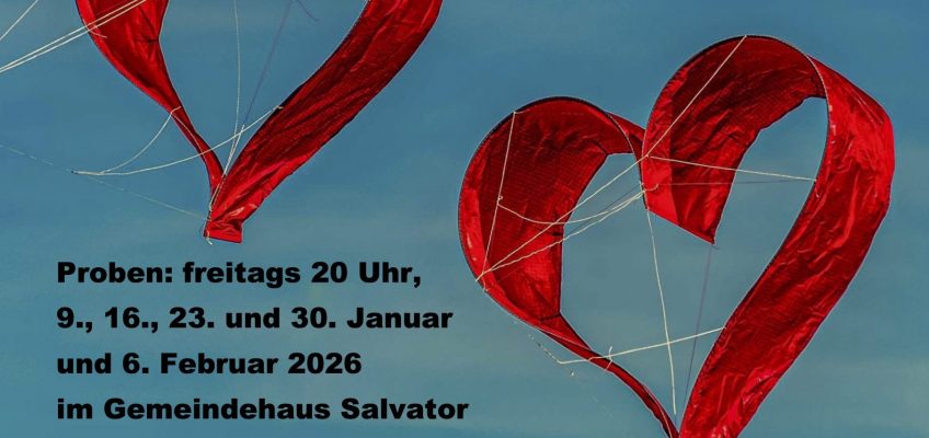 Die Aufführung ist am 8. Februar im Gottesdienst für Liebende um 18.30 Uhr im Gemeindehaus Salvator, Ansingprobe 17.30 Uhr.