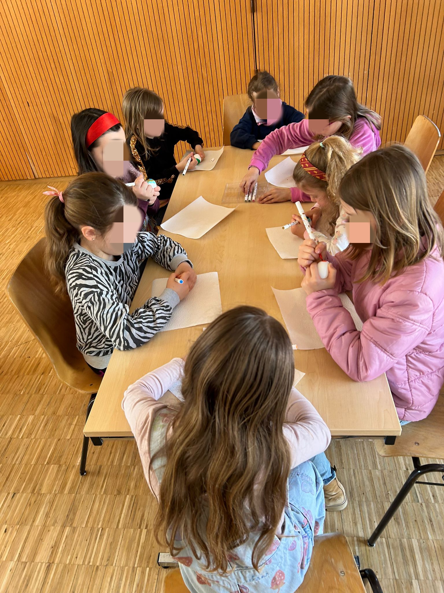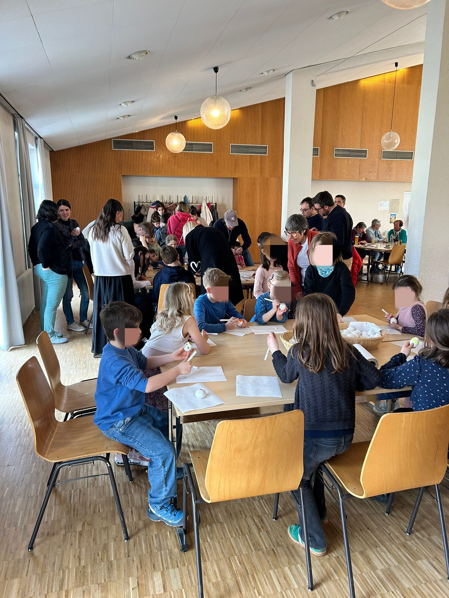 Nach einem kurzen, kindgerechten Impuls zur Fastenzeit und zur Vorbereitung auf Ostern ging es direkt los: Eier wurden bemalt, Kresse-Nester gebastelt und Kerzen verziert. Alle Tische waren besetzt und überall wurde konzentriert gearbeitet, gelacht und bewundert. Das vorbereitete Bastelmaterial für rund 80 bis 100 Kinder war am Ende komplett verbraucht – ein besseres Zeichen für einen gelungenen Vormittag gibt es wohl kaum 😅
