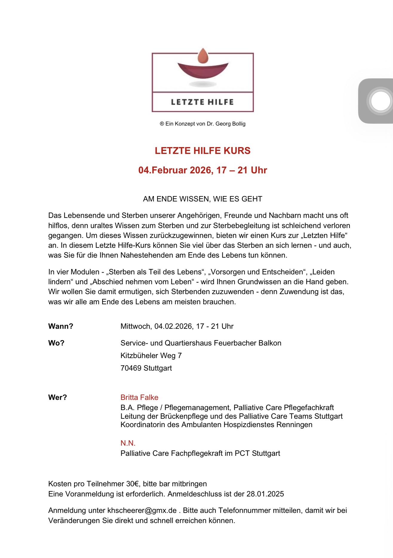 Sterben – Letzte Hilfe Kurs (freie Plätze)